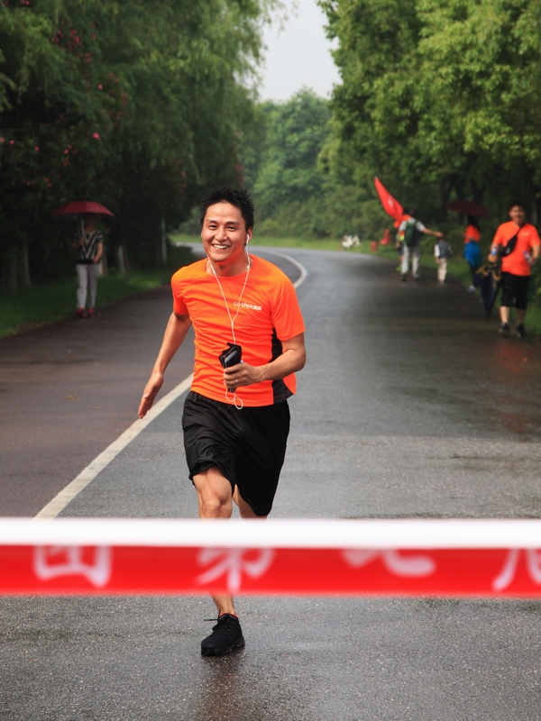 八點二十分,隨著裁判長一聲令下,大家簇擁前行。起跑不久,天空下起了大雨,許多隊員撐傘前進,但更多隊員是冒雨前行。大家奮勇當先,你追我趕,在奔跑中盡情揮灑。