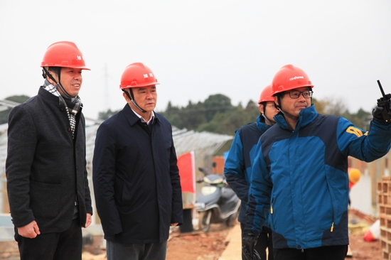 董事長梁明寶、總經(jīng)理察看萬安旭陽項目現(xiàn)場