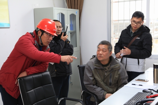 副總經(jīng)理鄧新華向董事長梁明寶、總經(jīng)理方雪根通報項目建設(shè)情況