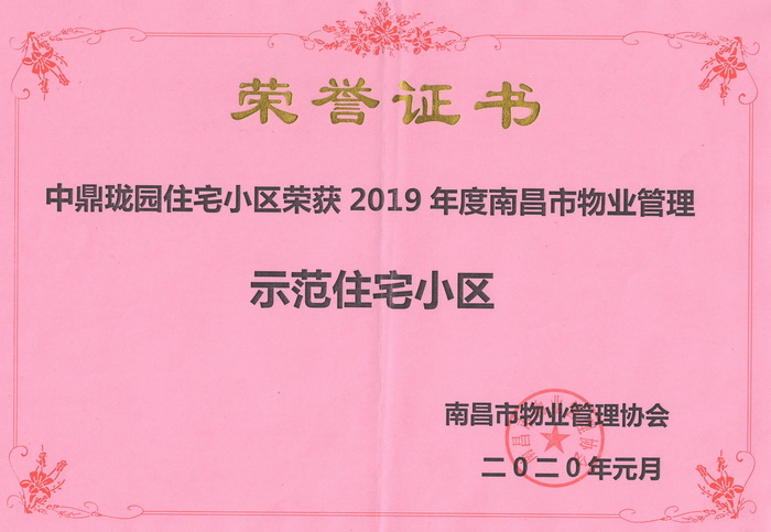 2019年12月11日,南昌市物業(yè)管理協(xié)會(huì)發(fā)布《關(guān)于通報(bào)表彰2019年度南昌市物業(yè)管理示范項(xiàng)目的通知》,高能物業(yè)服務(wù)的君悅府項(xiàng)目、中鼎瓏園項(xiàng)目名列其中,雙雙榮獲“2019年度南昌市物業(yè)管理示范住宅小區(qū)”稱號(hào)。2020年1月4日在泰納克酒店舉行了隆重的授牌儀式。