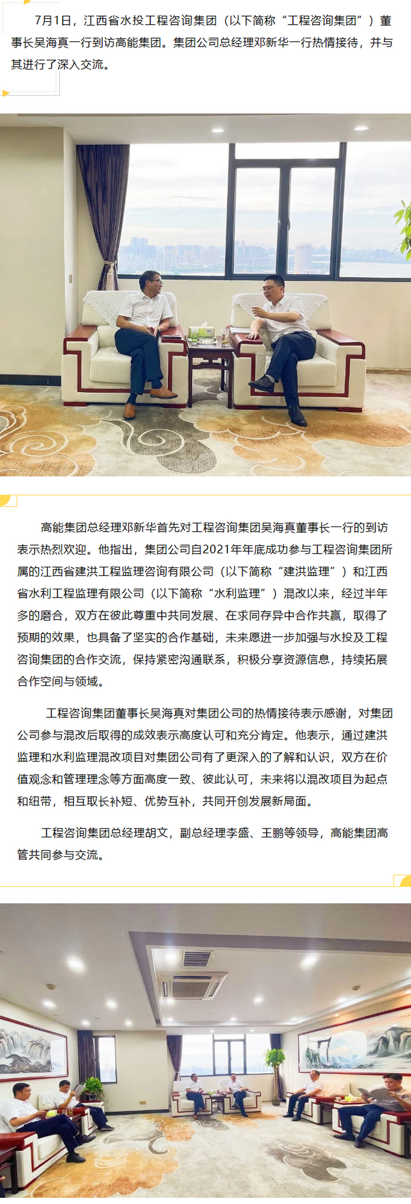 江西省水投工程咨詢集團董事長吳海真一行到訪高能集團