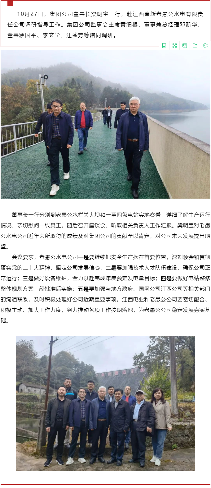 集團(tuán)公司董事長(zhǎng)梁明寶一行調(diào)研指導(dǎo)奉新老愚公水電公司