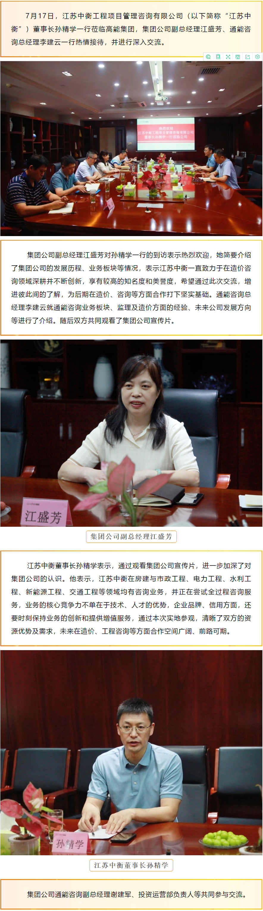 江蘇中衡工程項(xiàng)目管理咨詢有限公司董事長孫精學(xué)一行蒞臨高能集團(tuán)參觀交流