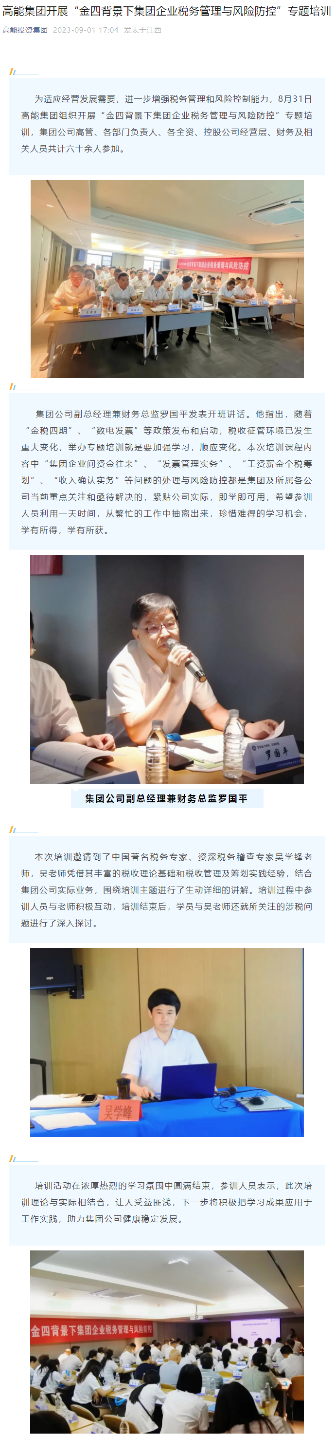 高能集團開展“金四背景下集團企業(yè)稅務管理與風險防控”專題培訓