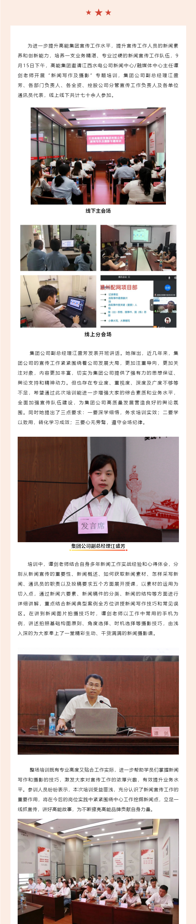 高能集團(tuán)開展“新聞寫作及攝影”專題培訓(xùn)