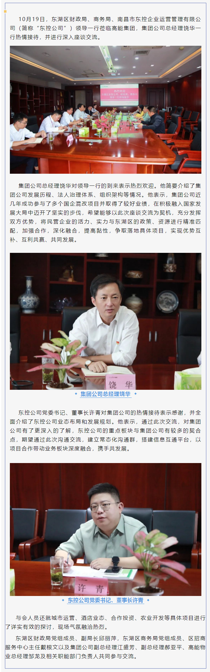 東湖區(qū)財(cái)政局、商務(wù)局、東控公司領(lǐng)導(dǎo)一行蒞臨高能集團(tuán)座談交流