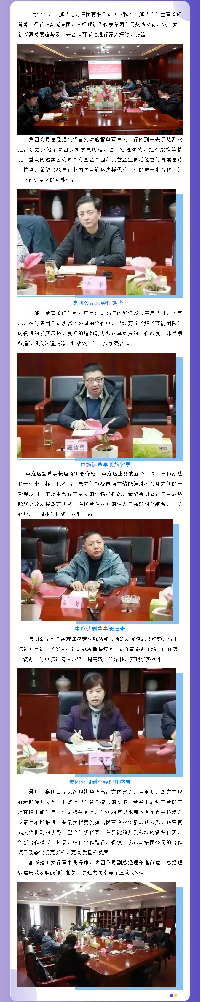 中施達(dá)電力集團(tuán)有限公司董事長施智勇一行蒞臨高能集團(tuán)座談交流