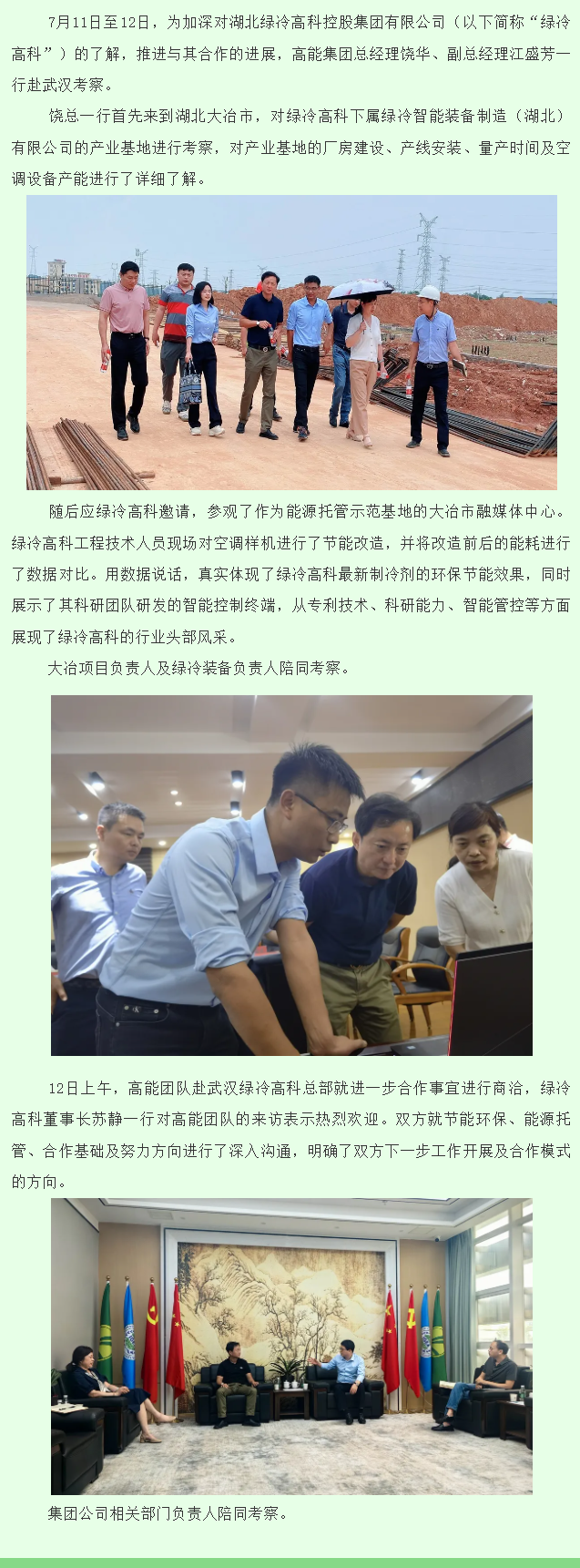 加深了解 推進(jìn)合作——記高能集團(tuán)赴湖北綠冷高科考察