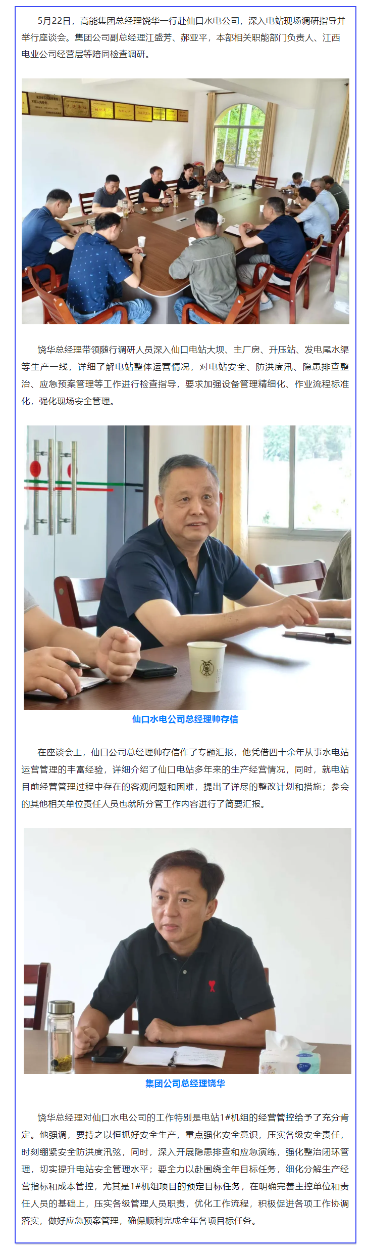 高能集團(tuán)總經(jīng)理饒華一行赴仙口水電公司調(diào)研指導(dǎo)