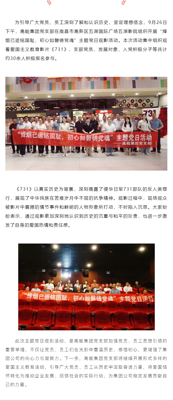 烽煙已逝銘國(guó)恥 初心如磐鑄黨魂——高能集團(tuán)黨支部組織開(kāi)展主題黨日觀影活動(dòng)